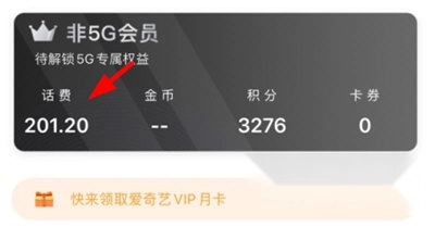 在个人页面查找指定区域,直接点击查看当前话费余额。