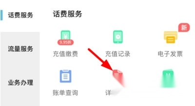 进入服务界面,定位详单查询功能。