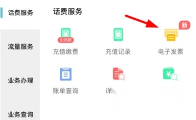 在服务页面定位电子发票选项,点击进入开票界面。