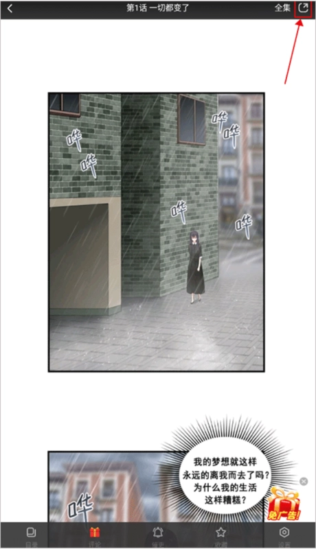 阅读页面顶部点击分享图标。选择任意分享渠道如微信或QQ。分享后漫画生成图片在浏览器。下拉窗口找到保存按钮。点击保存到本地相册。
