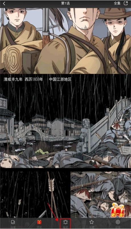 漫画阅读界面轻触屏幕底部。功能区弹出后选择催更选项。提交请求通知作者更新。