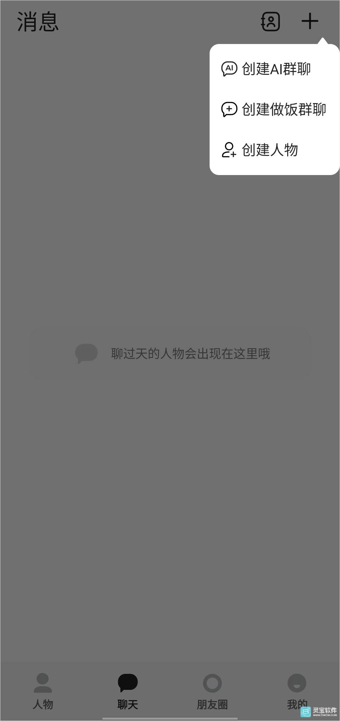 2.选择右上角"+",创建AI群聊或做饭群聊。