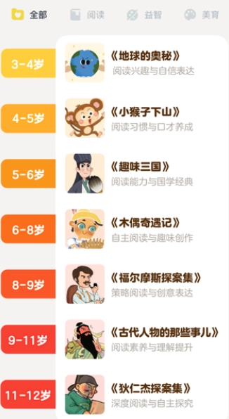 独立阅读模块解放家长时间,年度千本童书持续更新。参照教育部标准制定计划,分龄书库按能力分级推送。