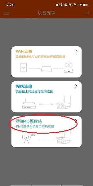 选择“添加4G摄像头”,扫描机身二维码完成连接;