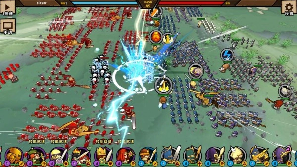 战中技能手动操控,AI自动索敌,例如骑兵突袭后排弓兵。