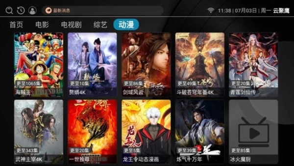 4. 影视资源涵盖电影/剧集/综艺/动漫四类