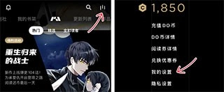 1. 阅读界面点击设置图标