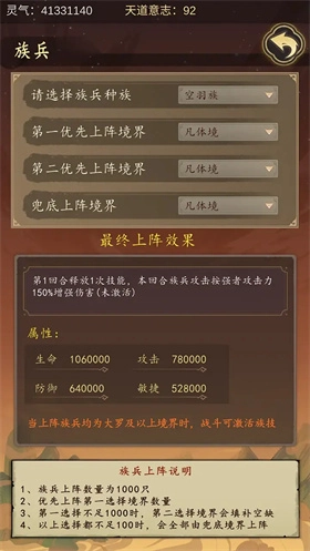 族技是种族的主要功能之一,上阵族兵都是大罗、大罗巅峰即可触发族技,只有种族基数上去境界才能突破上去。