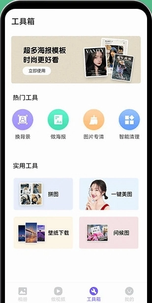 3. 编辑流程:选中图片进入工具箱,使用美颜或滤镜调整参数,保存至原相册或新建位置。