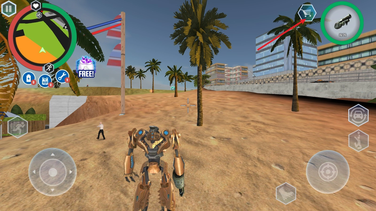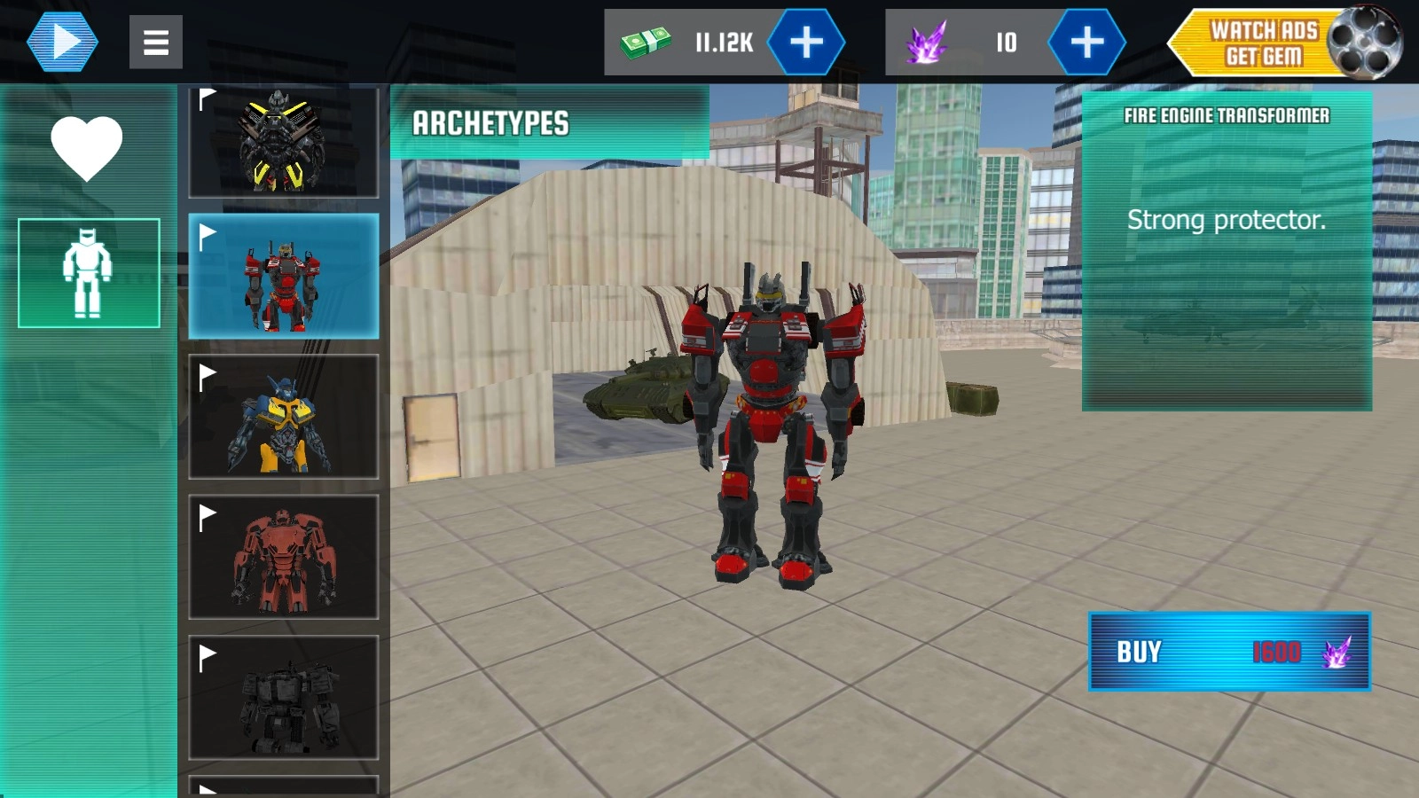 3、形态切换:点击界面按钮,在鲨鱼形态水下潜行或机器人形态陆地作战。