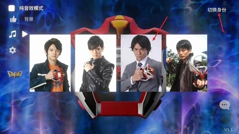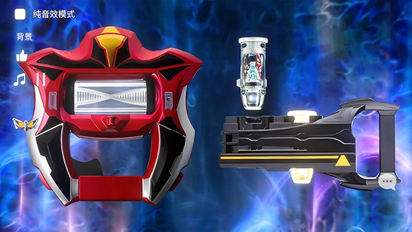 1、真实模拟变身动作,玩家通过手势操作还原剧中插入胶囊、旋转升华器流程,触发动态光效和形态切换动画。