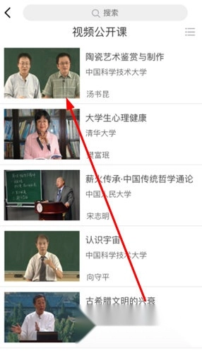 2、进入课程列表后,点击选择一门想要学习的课程。