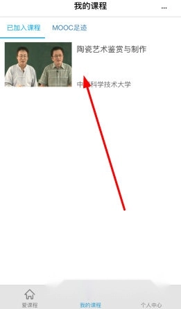 1、进入爱课程APP“我的课程”界面,选择一门正在学习的课程。