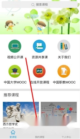 1、打开爱课程APP,在主界面选择一项喜欢的课程类型。