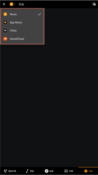 2. 从Music、Djay Music、TIDAL、SoundCloud选源