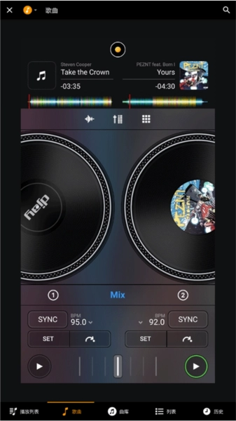 音乐库整合:混合本地文件与TIDAL Premium、SoundCloud Go+数百万首曲目,按BPM或流派筛选。