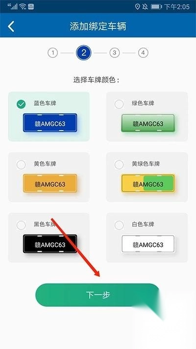 3、选择对应车牌颜色进入后续步骤;