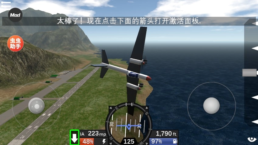 触屏操作需双手配合:左侧控制油门,右侧调整飞行姿态
