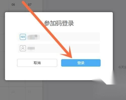 2、点击“参加码登录”选项;
