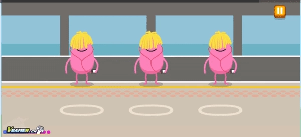 听歌避险:将三位戴耳机角色拖入安全圈内,远离地铁轨道危险区。