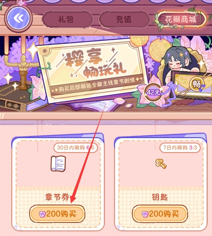 每200花瓣即可兑换1张章节券。