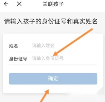 3、输入小孩姓名和身份证号,点击确定即可。