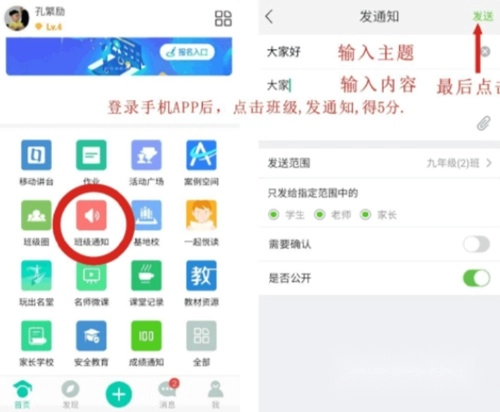 3、登录智慧学习广场APP发班级通制得5分,比如发下午好、早上好之类的。