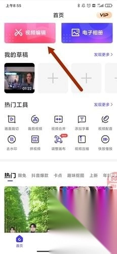 1、首先打开软件,在主界面点击左上角的【视频剪辑】功能按键。