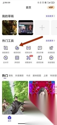 1、打开清爽视频编辑器app,在首页下方功能栏找到【裁剪视频】。