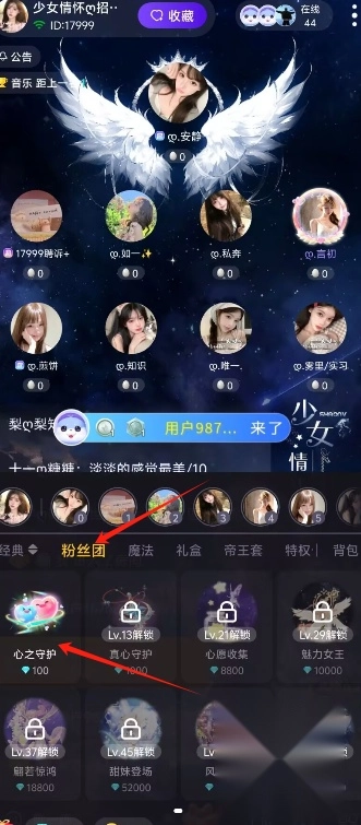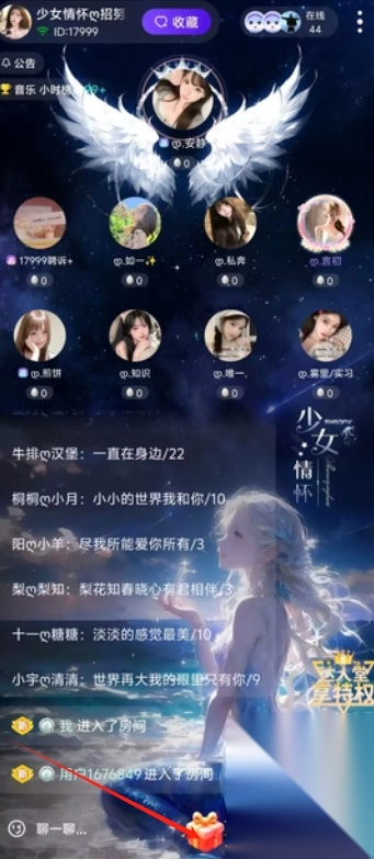 3. 点击礼物图标赠送礼物,自动加入粉丝团,接收新动态提醒。