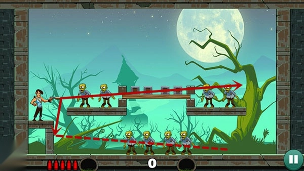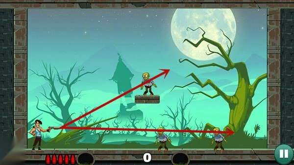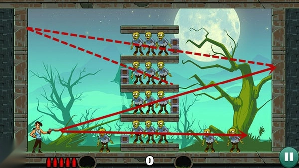 子弹反弹机制允许一次击杀多目标,提升分数潜力。愚蠢的僵尸3关卡场景各异,僵尸类型丰富,操作无门槛,反复挑战乐趣十足。