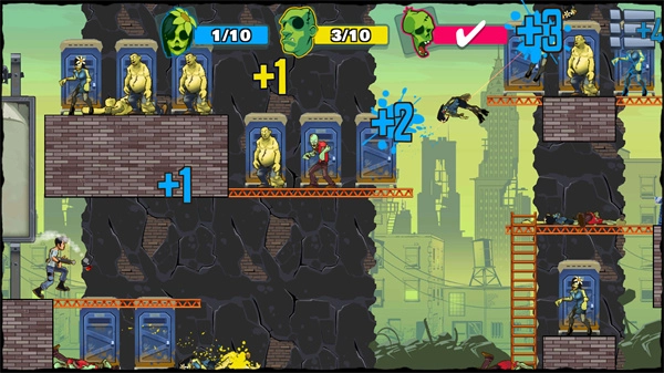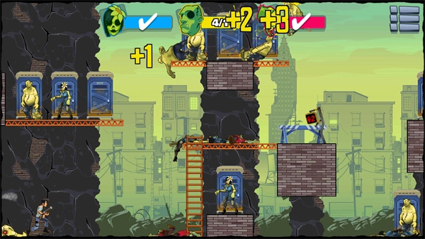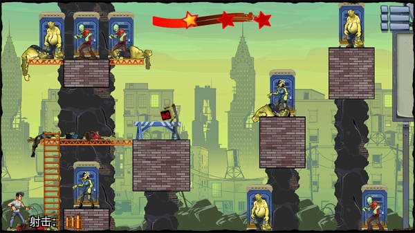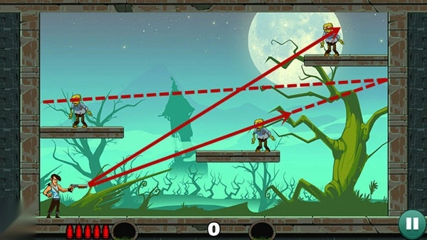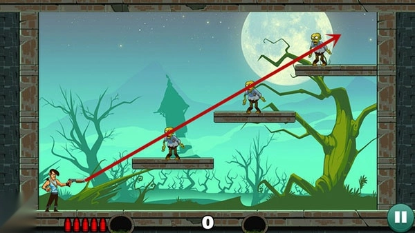 《愚蠢的僵尸》玩法类似《愤怒的小鸟》,但以子弹射击僵尸为核心。玩家需调整发射角度,利用反弹和环境互动,用有限子弹清除所有目标。关卡设计丰富,难度逐步提升。