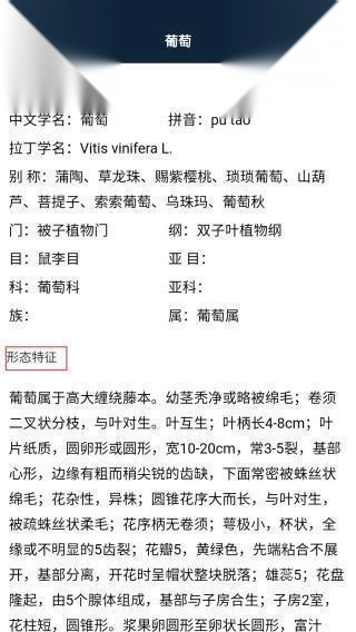 4.浏览【基本信息】和【形态特征】等内容。