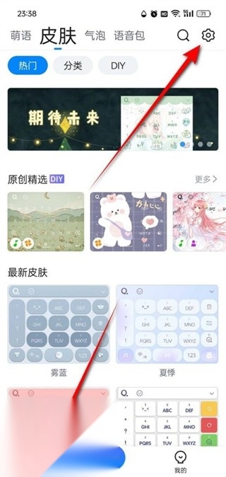 4. 皮肤更换:在输入法界面点击头像,选择“皮肤”选项。进入皮肤商店,找到喜欢的皮肤,分享后免费下载使用。下载完成后自动应用新皮肤。