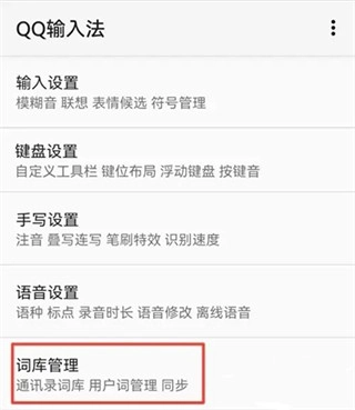 3. 词库管理:选择“词库管理”选项,可以进行同步常用语、备份和恢复词库等操作。