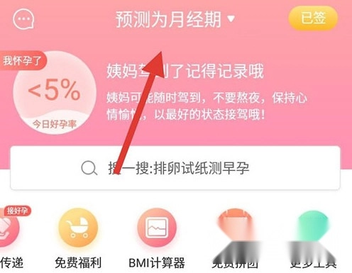 1. 首页顶部点击"月经期"状态栏