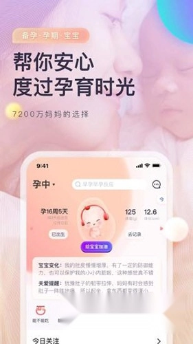 智能知识推送:基于用户所处孕周或育儿阶段,自动匹配孕期护理技巧、胎儿发育图解、婴儿喂养指南等专业内容。通过水果尺寸直观展示胎儿变化,支持家人共同关注成长进程。