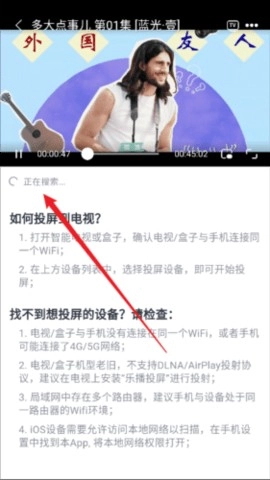 1. 播放界面点击右上角TV图标启动投屏