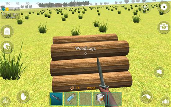 小编还遇到了木材堆,用匕首攻击,一次可以获得4个木材,很快就能获得99个。