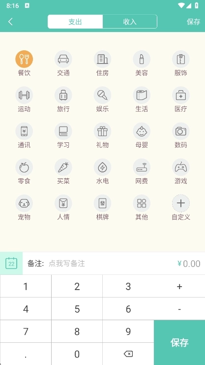 自定义指南:基础34类可扩展添加,建议旅行账本增加"门票""手信"等子项