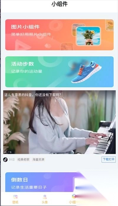 彩虹壁纸使用过程直观易上手:首先在首页浏览精美壁纸,滑动查看各类风格;其次下载众多好看头像,直接应用到社交平台;最后添加多种小组件到桌面,如步数记录或时钟,提升日常便利性。整个过程只需几步,新手也能快速掌握。