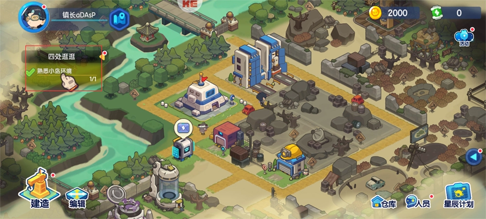 1. 跳过开场剧情后,首先点击主界面熟悉小岛环境