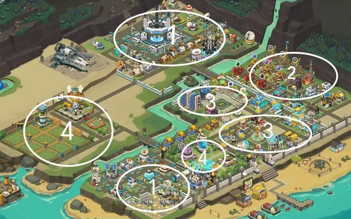 • 生产建筑(资源区):集中放置频繁点击的原料生产设施,避免滑动地图收集