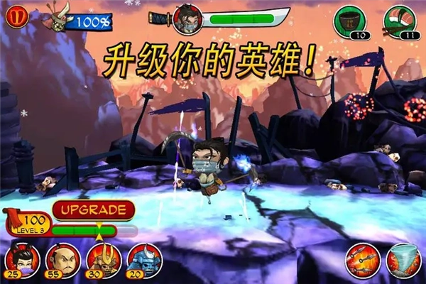 横版冒险设计包含海量关卡,玩法轻松趣味十足。丰富模式带来持久乐趣,任务奖励培育强力角色。特殊技能如减速或群攻,关键时刻改变战斗走向。游戏支持触摸屏精准操控,日本战国风格画面精致。