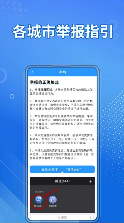 遇违章行为快速启动应用,按提示拍摄证据。