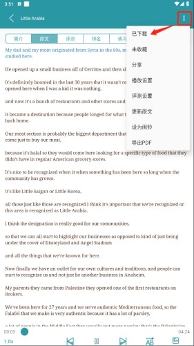 2. 中英双语自由切换,用户可对照译文找出理解偏差,积累生词并实时收藏到词汇本。