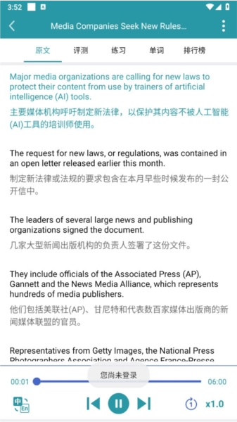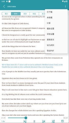 3. 每篇文章附带习题,检测掌握程度,智能语音评测精准定位发音问题。