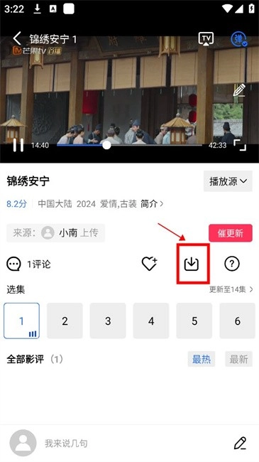 1.点击想要缓存的作品,进入播放页点击下载图标