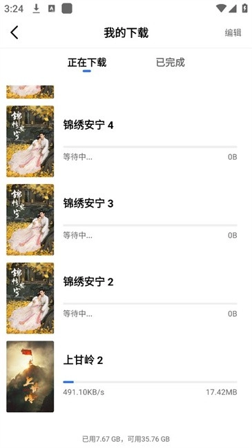 4.可以看到下载进度已经完成下载的集数