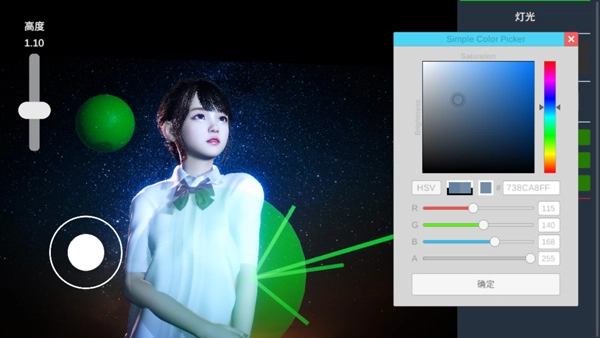 4、点击光源选项,设置亮度、颜色和方向,应用滤镜或柔光等特效,营造理想氛围。